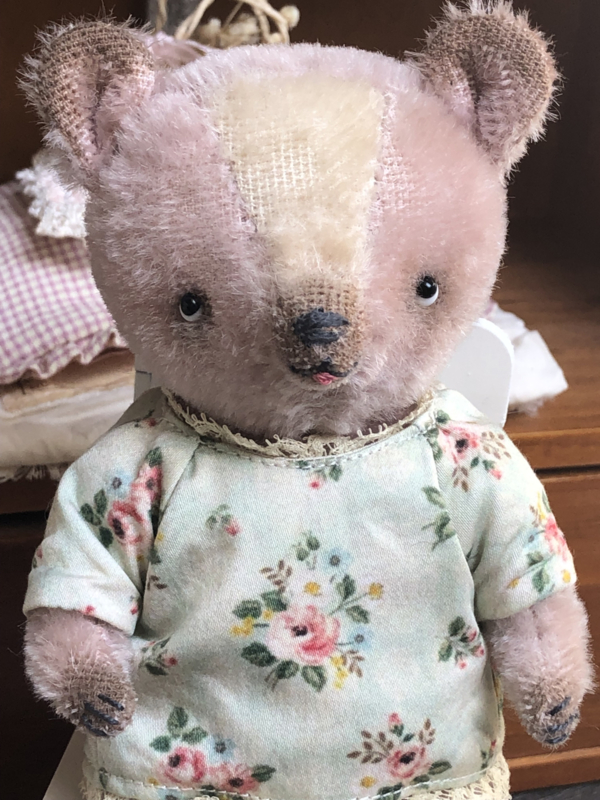 The little bear is also painted and the bear & blouse have been given a tea bath for a vintage/antique and worn look.