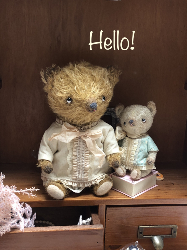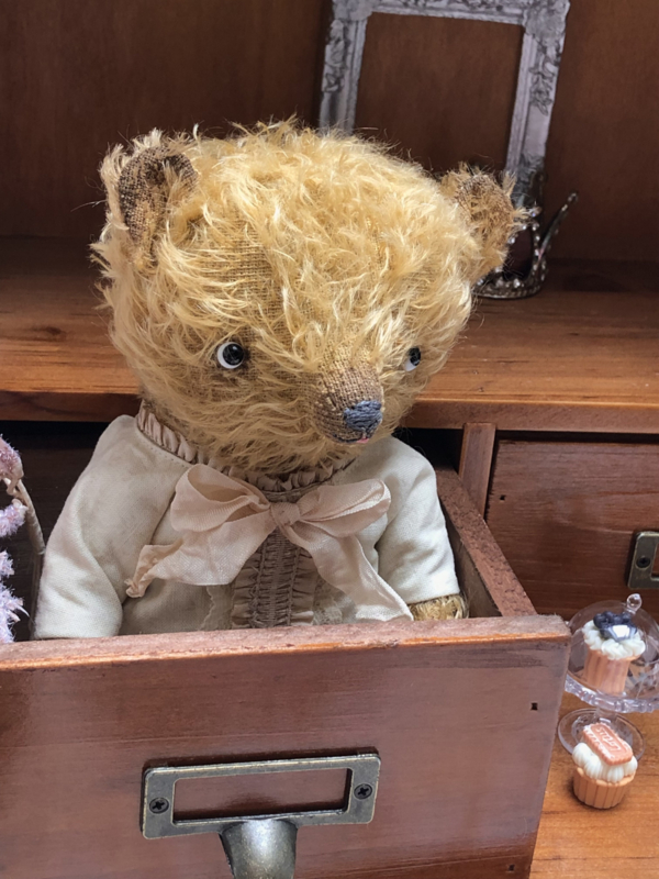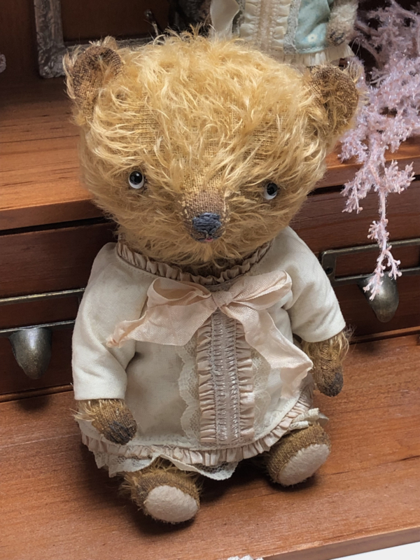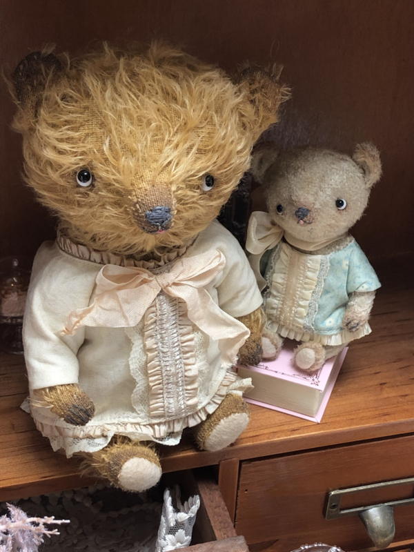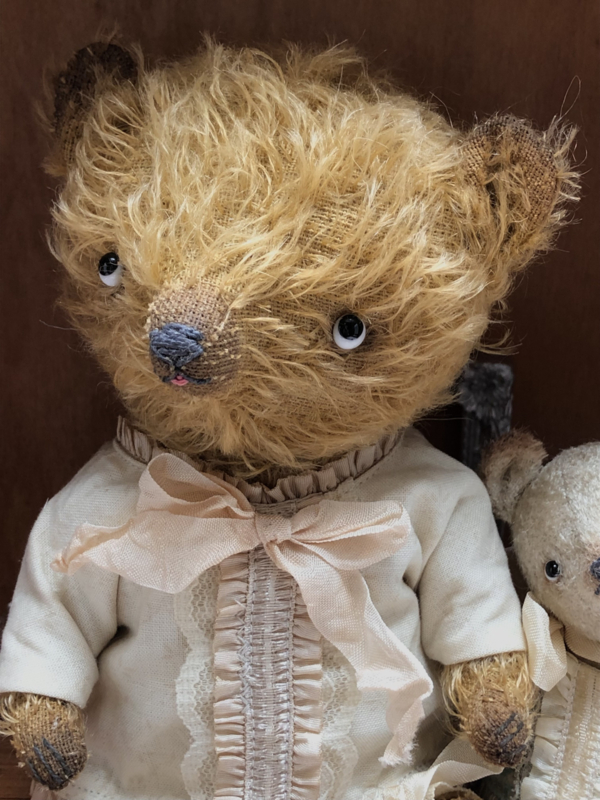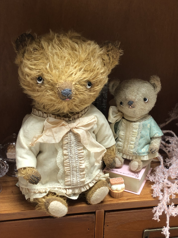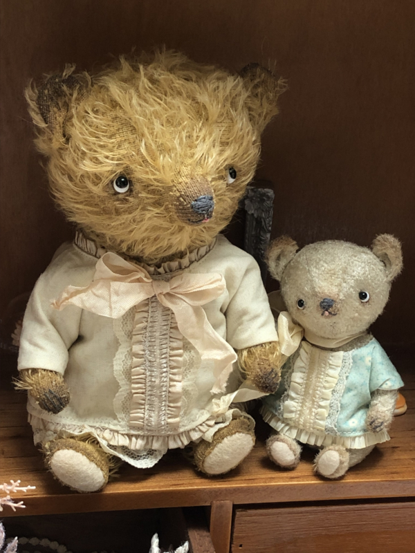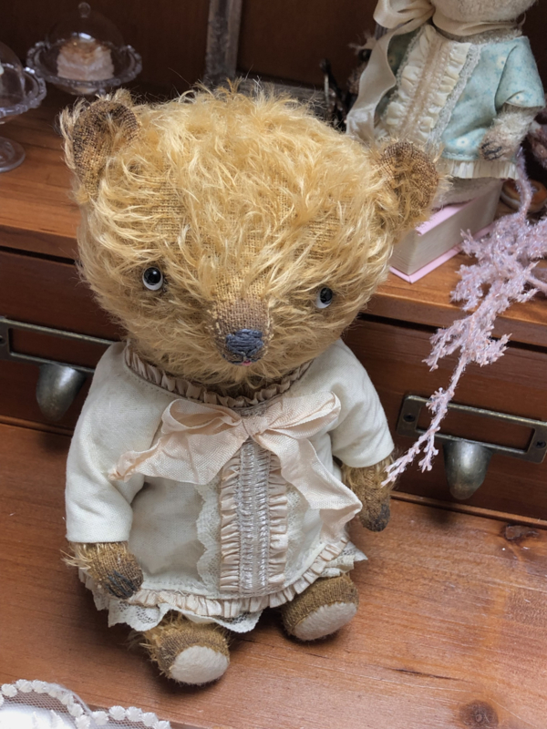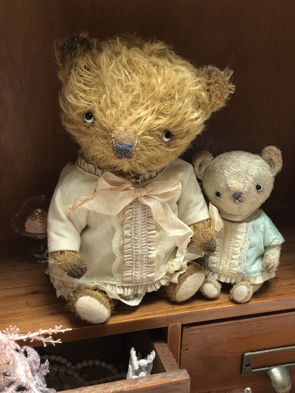 The little bear is also painted and the bear & blouse have been given a tea bath for a vintage/antique and worn look.